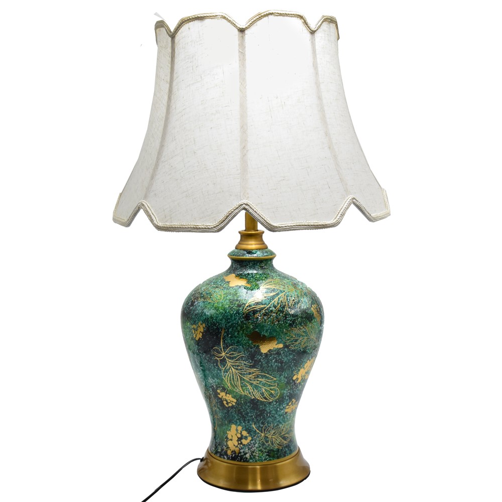 Ndricues tavoline, qeramike/tekstil, E27,i bardhe/jeshil.