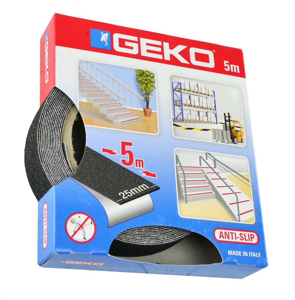 Ngjitës kundër rrëshqitjes, 5 mx25 mm. Shumë i përshtatshëm për ambientet ku ka rrezikshmëri rrëshqitje. Përdoret për shkallët etj. Rezistent ndaj shtypjes dhe lagështirës.