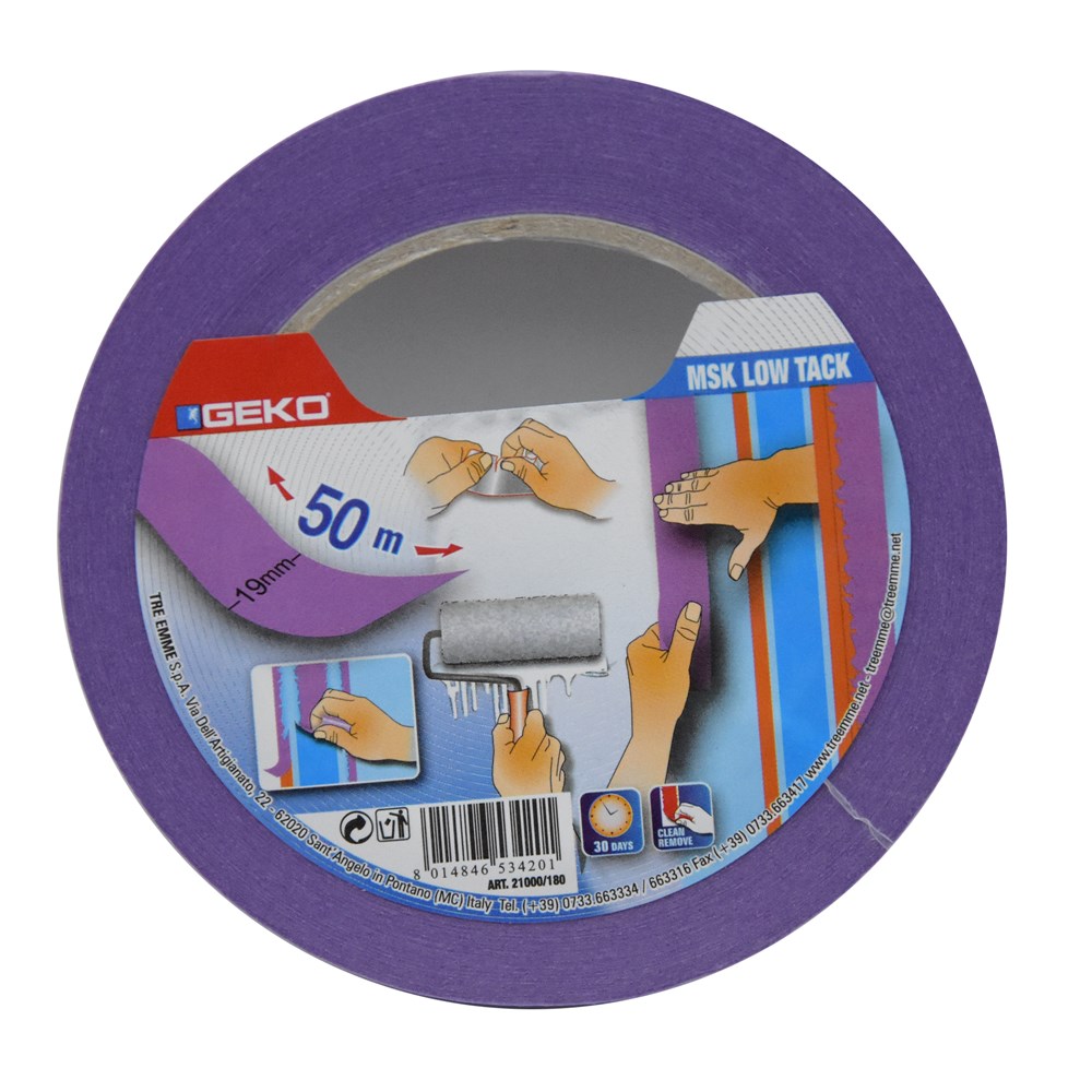 Ngjitës letre (tenije), Geko, MSK Low tack, 19 mm x 50 m, vjollcë