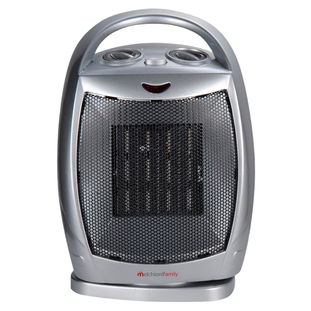 Ngrohëse me ventilator qeramike Melchioni 1500W me lëkundje dhe dorezë komode. Elemente ngrohëse qeramike, lëkundje. Termostat i integruar, 2 nivele të zgjedhura të fuqisë (750/1500W). Treguesi LED i funksionimit. Mbrojtje nga mbinxehja.