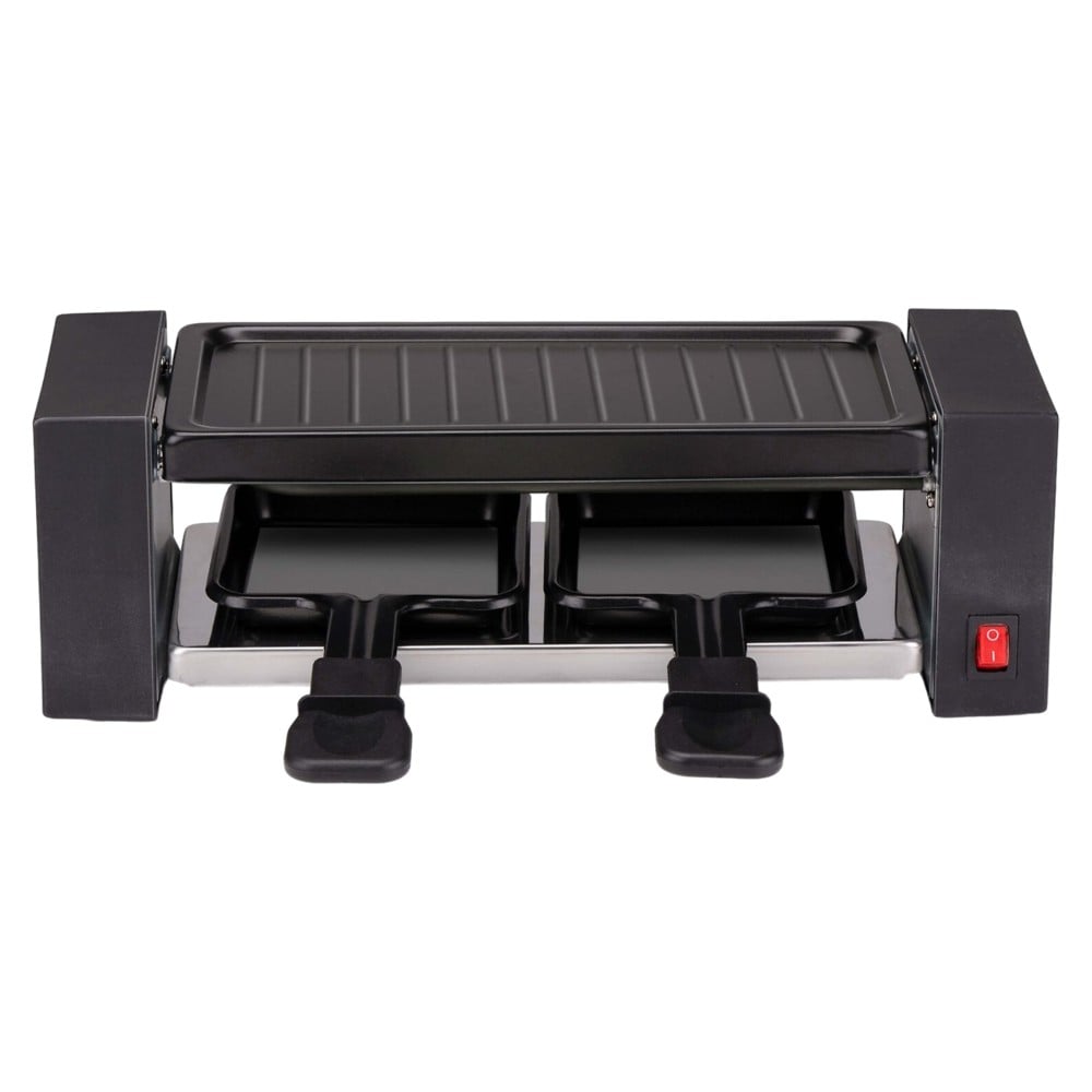 Një mbrëmje romantike ose e këndshme për dy me këtë Set Raclette Gourmet nga alpina. Përfshin dy tigane dhe dy spatula. Përmasat e tij të vogla e bëjnë atë një grup ideal për ta marrë me vete në pushime ose në fundjavë kur dëshironi të bëni diçka të veçantë para darkës. Me një fuqi prej 400 W, nuk konsumon shumë energji dhe mund ta përdorni në shumicën e vendeve. Pllaka e skarës është prej çeliku inox të fortë dhe ka një shtresë që nuk ngjit. Seti Gourmet Raclette është i pajisur me një dritë treguese që tregon kur pjata e skarës me shirita është e nxehtë dhe gati për përdorim. Dorezat e kapjes së ftohtë ju lejojnë të merrni dhe të lëvizni pajisjen, edhe kur pllaka e skarës është ende e nxehtë. Gjithmonë kujdes për djegiet. Seti Gourmet Raclette është i pajisur me këmbë kundër rrëshqitjes në mënyrë që të qëndrojë fort në një sipërfaqe të sheshtë. Është shumë bukur kur punoni me një pjatë grill të nxehtë! Përdorni pjatën e skarës për të pjekur perime ose mish dhe tiganët për petulla të vogla ose për të përgatitur një omëletë në tryezë. Përdorni shpatullat e përfshira për të kthyer ushqimin. Me Setin Gourmet Raclette mund të bëni shumë gjëra: p.sh. pjata me perime, mish dhe/ose peshk. Raclette është, me pak fjalë, versioni zviceran i gustatorit. Më pas përdorni djathin zviceran që e shkrini ngadalë në mini tigan, si bazë për të gjitha llojet e pjatave të shijshme.