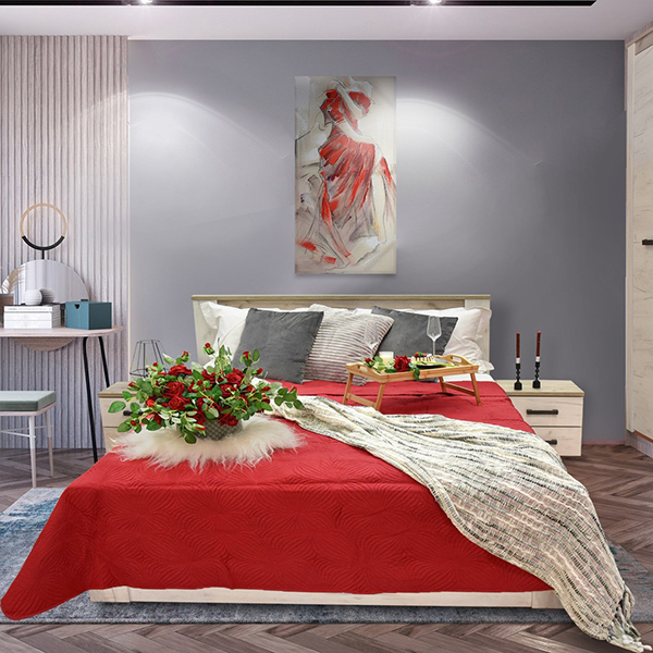 Qirinj dhe shumë petale! Ngjyra e kuqe e mbulesës dhe trëndafilave gërshetuar me dritën e artë të qirinjve në dhomën e gjumit, janë ato çka do t'a bëjë të paharrrushme datën e Shën Valentinit!