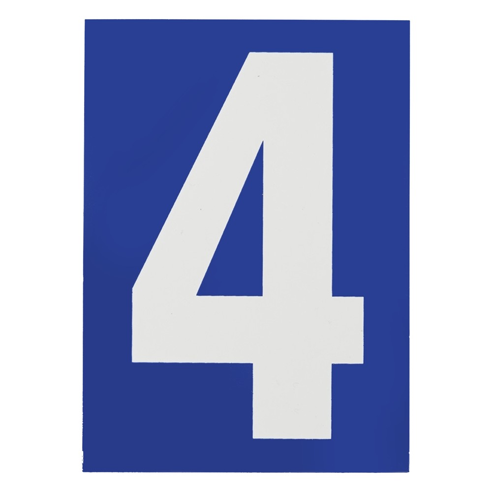 Numer 4, PVC, me sfond blu, me adeziv, 65x90mm