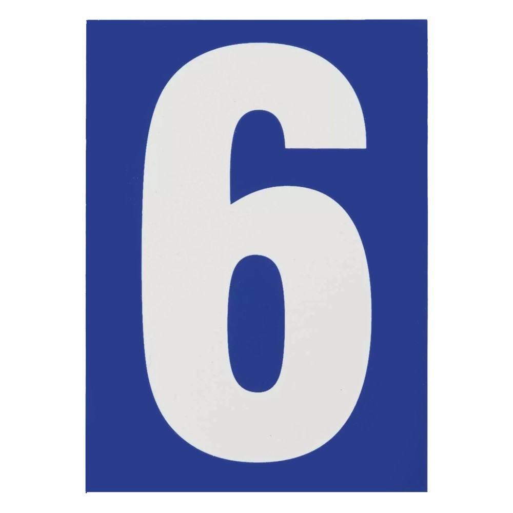Numer 6, PVC, me sfond blu, me adeziv, 65x90mm