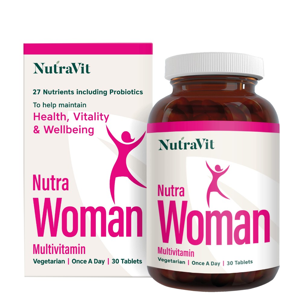 Tableta multivitamine për gratë, që përmbajnë 27 lëndë ushqyese, duke përfshirë probiotikët, acidin folik dhe hekurin, NutraWoman është një tabletë vitaminash e krijuar posaçërisht për gratë. Një tabletë në ditë do t'ju sigurojë mbështetje gjatë gjithë ditës