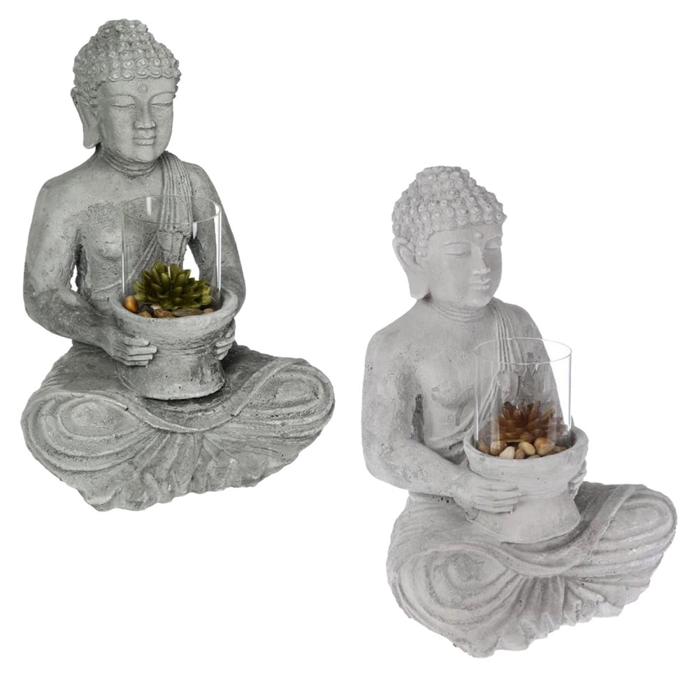 Objekt dekorativ, Buddha, çimento/qelq/parafinë, gri, 29.5x26xH40 cm