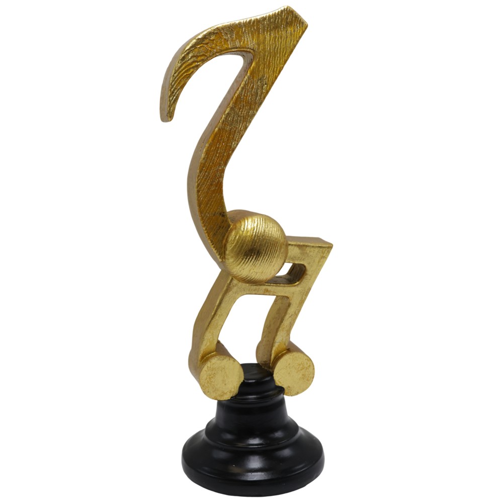 Një aksesor modern me karakter të veçantë që i jep një prekje artistike dekorit të shtëpisë tuaj. Ky objekt dekorativ është i përbërë prej rezine cilësore, me përfundim në ngjyrë të zezë elegante dhe detaje ngjyrë floriri që i japin shkëlqim dhe klas. Dizajni i tij simbolik me notat muzikore e bën të përsosur për hapësira bashkëkohore, duke shtuar stil dhe elegancë. Me dimensione harmonike, ky aksesor është ideal për të zbukuruar komodina, vitrina apo rafte.