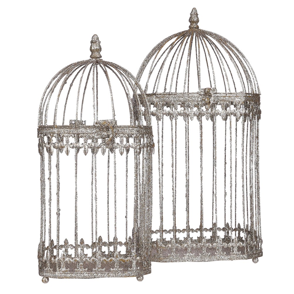 Po vlerësoni:Objekt dekorativ, set 2 copë, kafaz, Aviary, metal, shampanjë, Ø16 xH33 cm; Ø20 xH44 cm