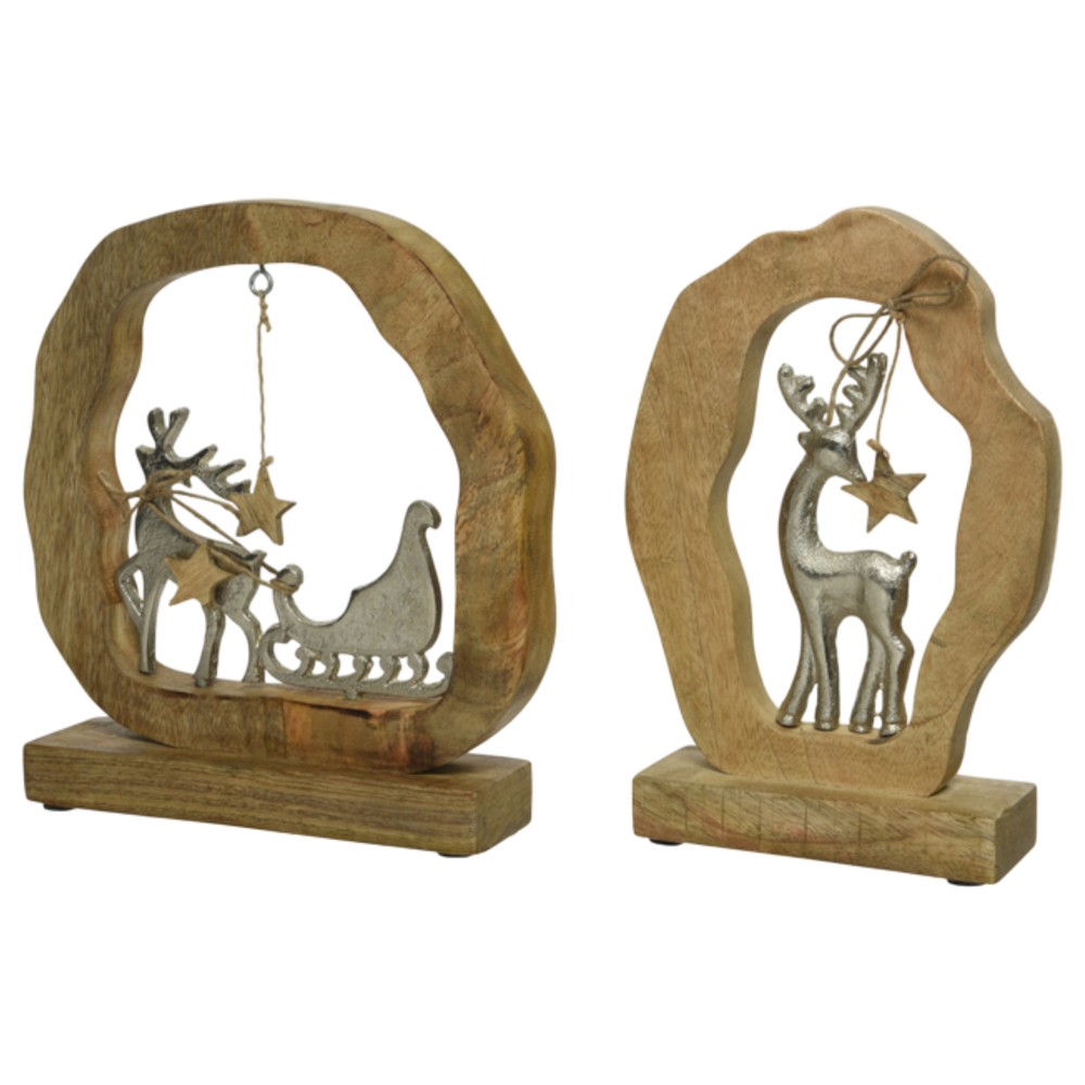 Ky objekt dekorues i punuar nga druri i mangos sjell një kombinim të bukur mes ngjyrës natyrale të drurit dhe detajeve në argjend, duke krijuar një kontrast elegant dhe tërheqës. Me përmasa 5x22xH21 cm, është i përshtatshëm për t'u vendosur në rafte, komodina apo sipërfaqe të tjera dekorative, duke i dhënë hapësirës një prekje artistike dhe të ngrohtë. Struktura e tij natyrale thekson veçantinë e materialit dhe punimit artizanal, ndërsa përfundimi me ngjyrë argjendi i shton një ndjesi moderne dhe sofistikuar. Një zgjedhje ideale për ata që kërkojnë të pasurojnë ambientin me elemente unike dhe me karakter.