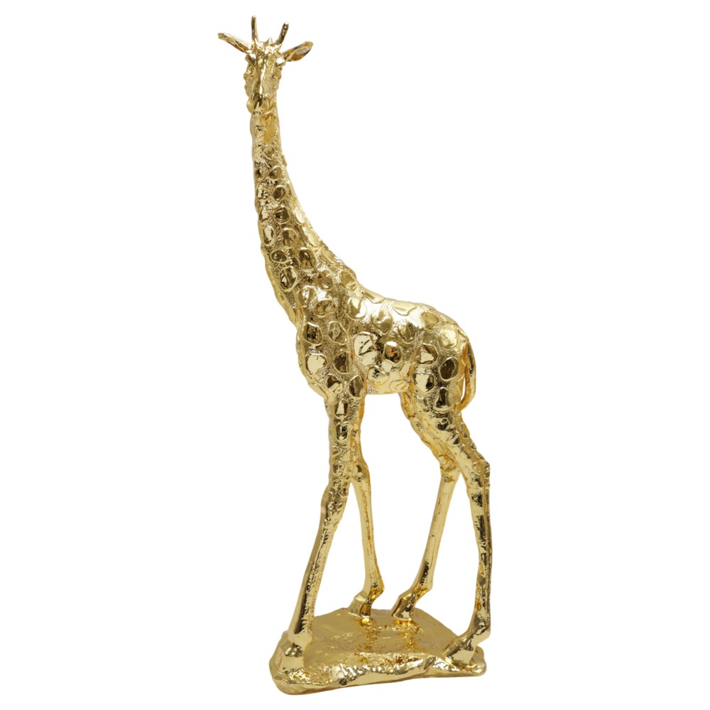 Objekti dekorues "Giraffe", i realizuar në metal me ngjyrë floriri, është një aksesor i rafinuar dhe elegant që sjell një ndjesi delikatese në çdo ambient. Ky dizajn i stilizuar i gjirafës, në përmasat 16x45 cm ju jep mundësinë për të krijuar kompozita vizuale interesante ose për të vendosur veçmas si elemente të veçanta dekorative. Ngjyra floriri i shton një pamje luksoze dhe të ndritshme, duke reflektuar dritën dhe duke krijuar një atmosferë të ngrohtë dhe të sofistikuar në hapësirat ku vendoset. Metalizimi i materialit i jep një aspekt modern dhe elegant, që mund të kombinohet lehtësisht me stile të ndryshme arredimi, nga më të thjeshtat deri tek më moderne dhe industriale. Ky objekt është i përshtatshëm për t'u vendosur në tavolina, rafte, konsola, apo edhe në hapësira të mëdha si për shembull në sallone, holl dhe zyrat e dekoruara me një stil të veçantë. "Giraffe" është një aksesor i mrekullueshëm që do të shtojë karakter dhe shije në ambientin tuaj, duke i dhënë një theks të veçantë dhe artistik.