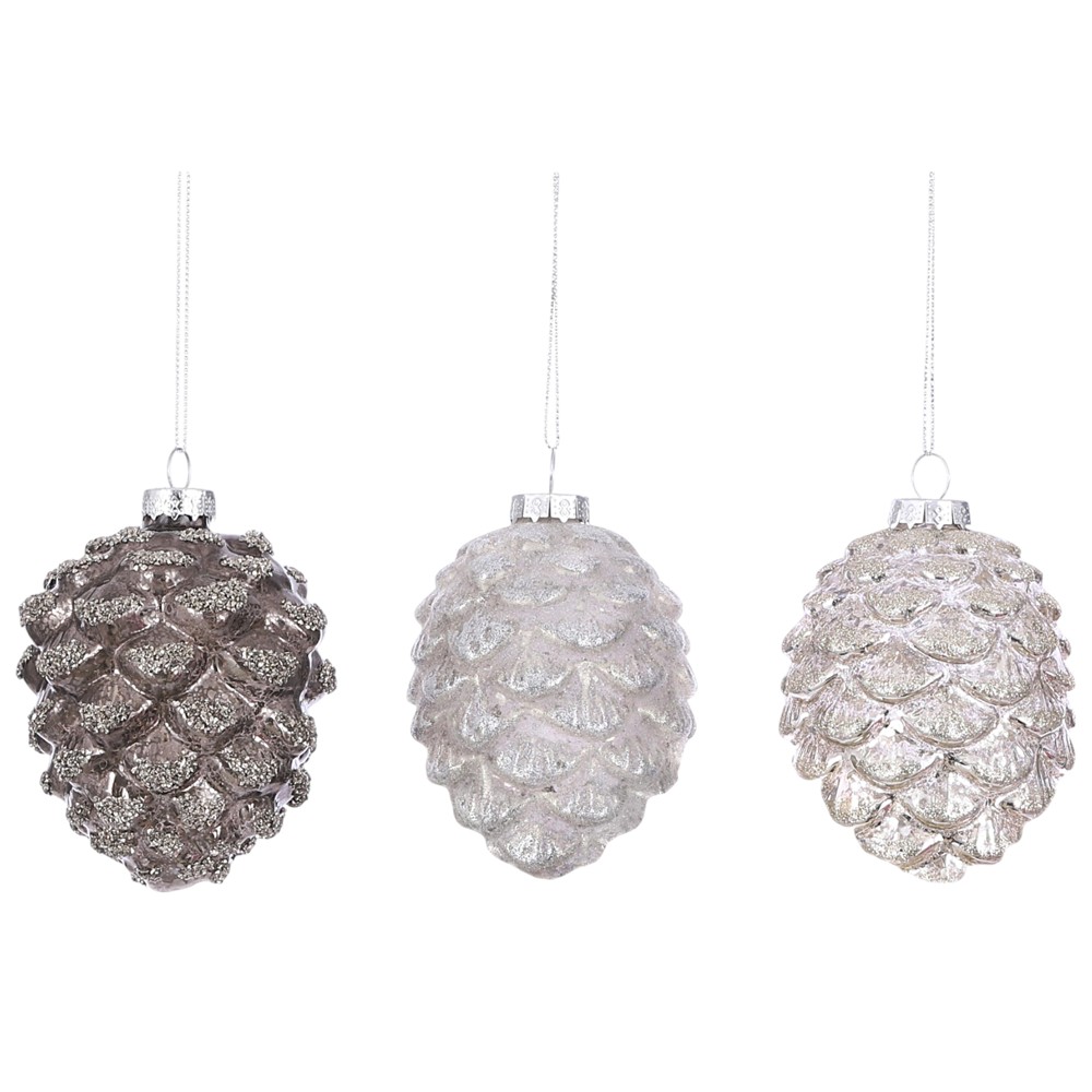 Po vlerësoni:Objekt dekorues me varje, boce pishe, qelq, ngjyre shampanje, silver, e bardhe, H10xD7 cm