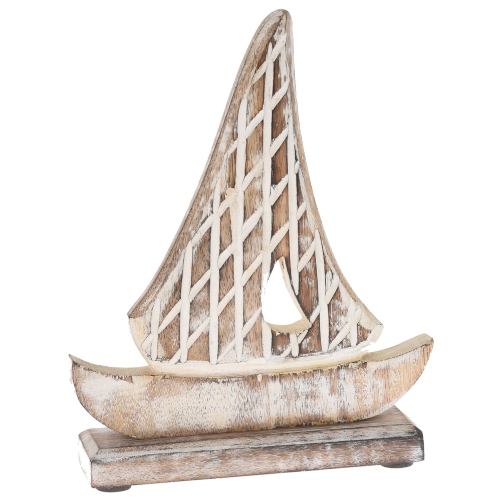 Kjo anije e bërë prej druri duket veçanërisht e shkëlqyeshme në kombinim me modelin e stilizuar të anijes. Kjo pjesë e dekorimit të drurit është veçanërisht fisnike dhe tërheqëse. Ajo gjithashtu bënë përshtypje me ngjyrën e saj natyrale. Kombinohet lehtë me ambientin dhe mobiljet tuaja. Ideale për të dekoruar shtëpinë tuaj në stilin detar.