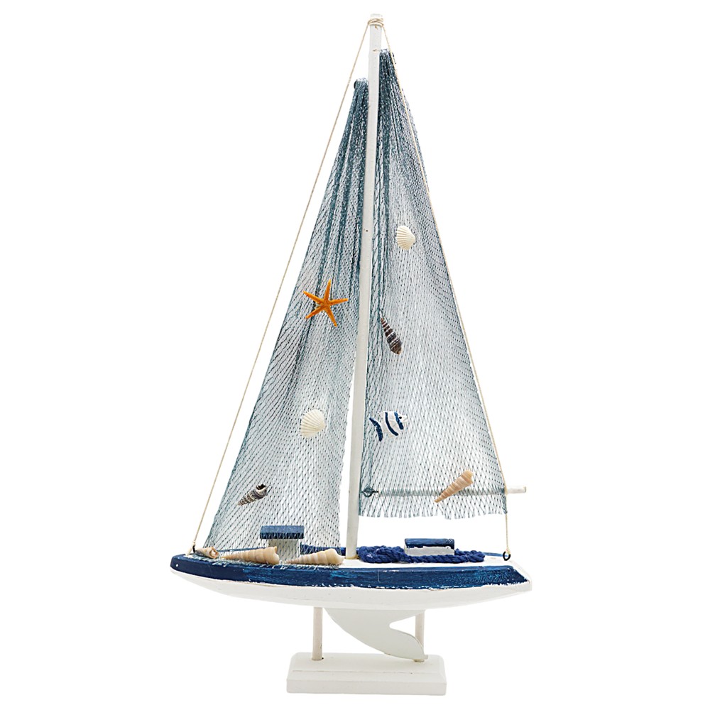 Varka dekorotive me një punim artistik, vjen për të shfaqur personalitetin tuaj dhe për të përmirësuar pamjen e çdo hapësire të ambjentit tuaj. Ajo do ta përmirësojë dhomën e ndenjes të frymëzuar nga motive bregdeti, kur shfaqet në tavolina ose rafte ekspozitori. E dizajnuar nga material druri dhe me ngjyrat e saj e bardhë/blu ajo do te jete një pikë fokusi qëndror në çdo ambjent.