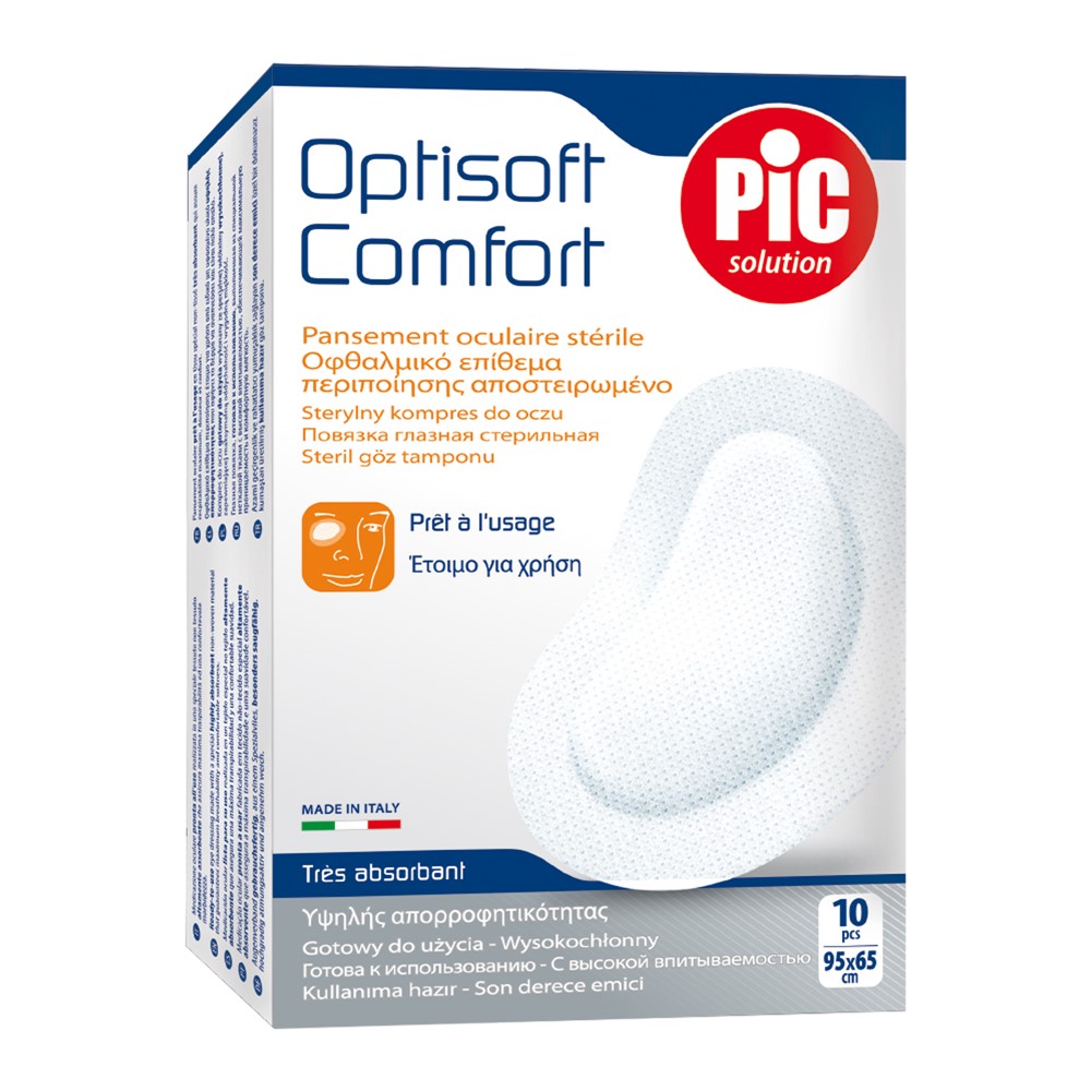 Po vlerësoni:Optisoft Comfort, garze sterile per syrin, shume perthithese. 10 Cope, 95 X 65 Mm.