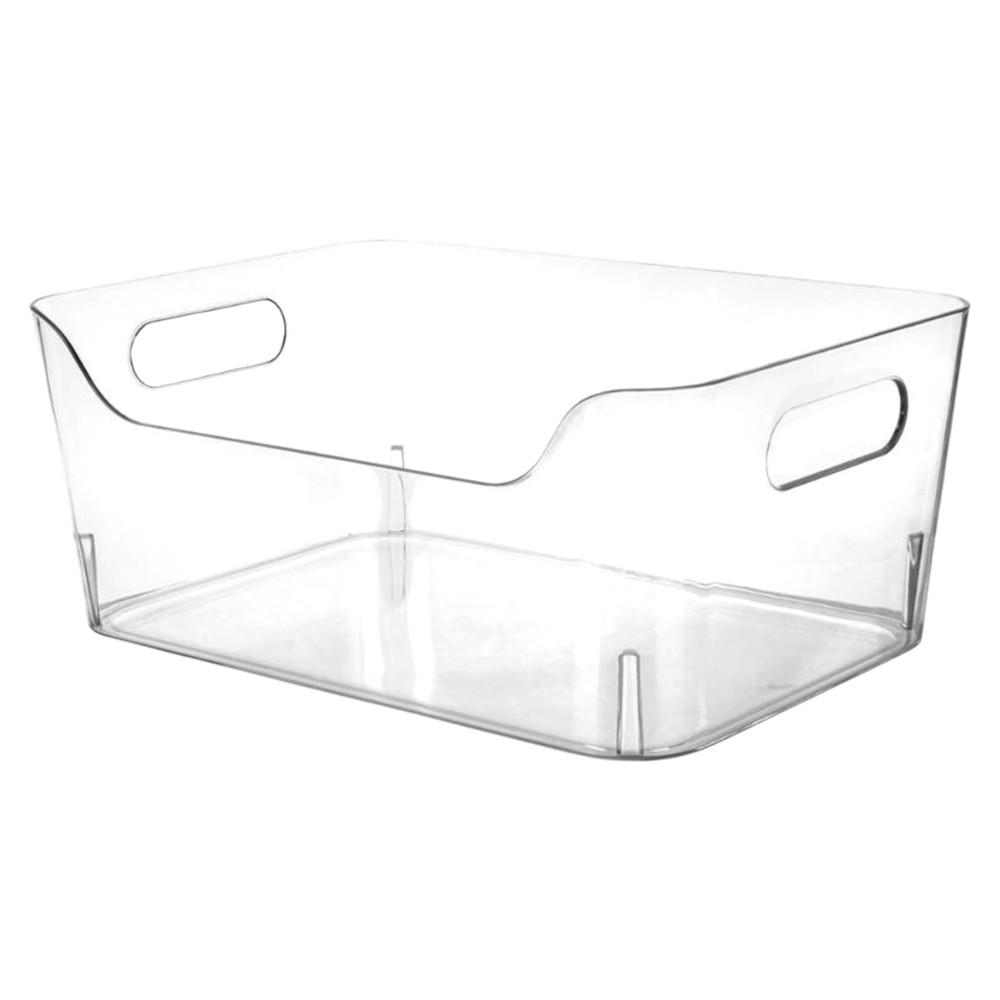 Ky produkt është një organizues i dizajnuar për të ruajtur dhe organizuar artikujt në frigorifer. Organizuesi është bërë nga plastika transparente, e cila lejon shikimin e brendshëm të artikujve të vendosur brenda tij. Organizuesi ka dimensione 27x 19x H11 cm, duke ofruar hapësirë ​​dhe organizim të mjaftueshëm për të vendosur produkte të ndryshme në frigorifer. Ky produkt është një zgjedhje e shkëlqyeshme për të përmirësuar organizimin e hapësirës së frigoriferit. Me dimensionet e tij të përshtatshme dhe dizajnin e qëndrueshëm, ky organizues ofron një zgjidhje praktike dhe funksionale për të ruajtur dhe organizuar artikujt në mënyrë efikase dhe të lehtë për t'u gjetur.
