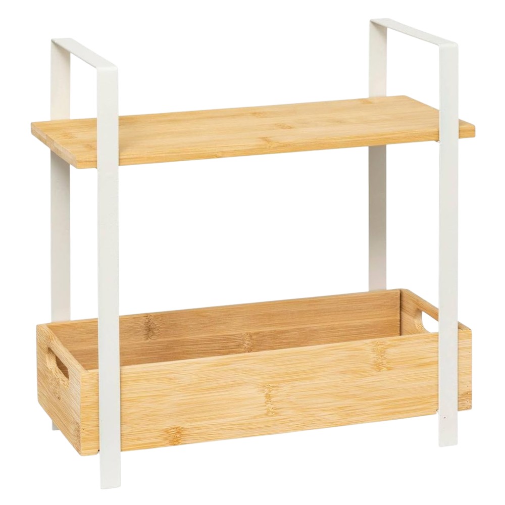 Po vlerësoni:Organizues me 2 kate Ordera, çelik/bambu, natyrale/e bardhë, 30x14x30 cm