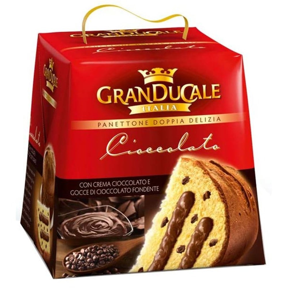 Panettone GranDucale Double Chocolate është një ëmbëlsirë premium italiane, e mbushur me krem çokollate dhe copëza çokollate, që ofron një shije të pasur dhe intensive. I përgatitur me një recetë 100% me gjalpë, garanton butësi dhe aromë të jashtëzakonshme.
