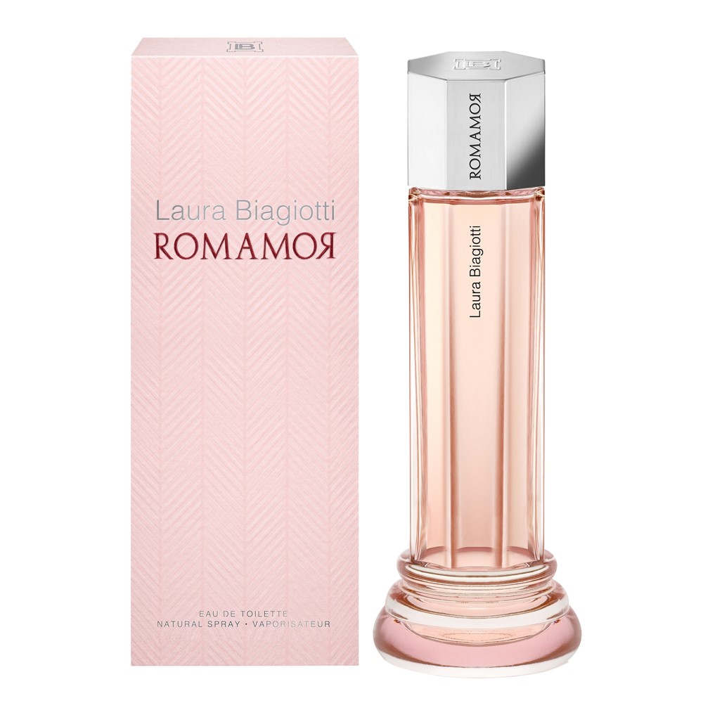Parfum për femra, Romamor, Laura Biagiotti, EDT, qelq, 100 ml, rozë dhe argjend, 1 copë