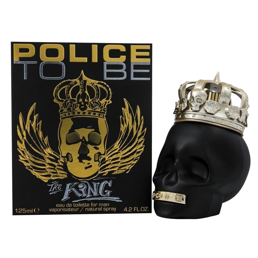 Eau de toilette (EDT) per meshkuj, me përqendrim 5-15 % të vajrave esencialë (parfum). Police To Be The King është paraqitur në një shishe të zezë mat në formë kafke dhe me krenari mban një kurorë të artë verbuese.