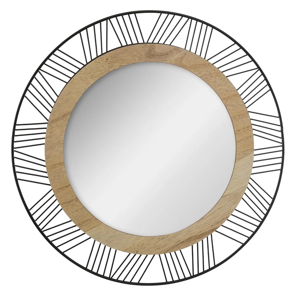 Gjallëroni çdo dekor dhome me pamjen magjepsëse të kësaj pasqyre rrethore. Dizajni i guximshëm i kornizës, në material metalik dhe mdf në ngjyrë kafe me të zezë e cila do të funksionojë mirë me ambientet e brendshme vintage dhe boho, duke krijuar një theks të gjallë të murit. E përshtatshme për dhomën e ndenjes, dhomën e gjumit ase korridorit të shtëpisë tuaj.