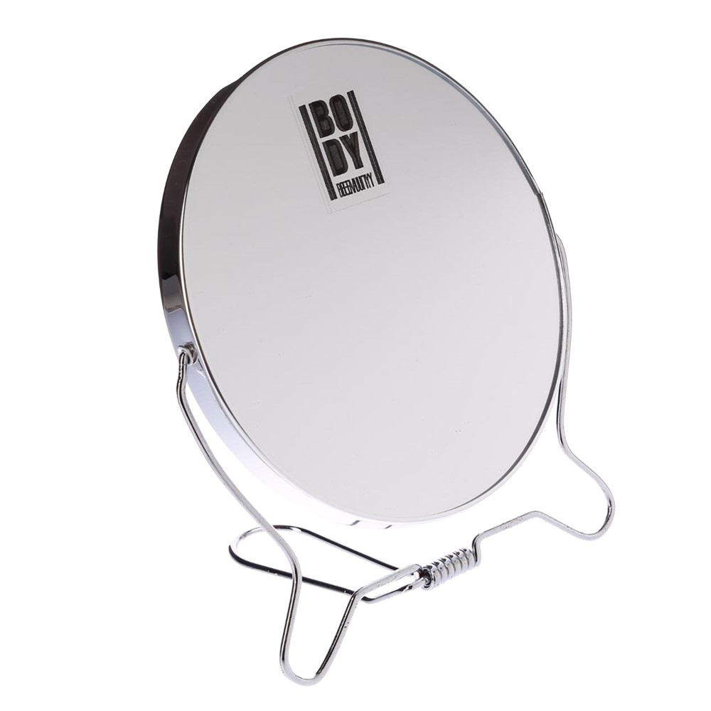 Pasqyrë kozmetike, në formë rrethore, me 2 anë, me strukturë mbajtëse prej materiali metalik, me diametër 14 cm, në ngjyrë argjendi. Pasqyra është e rrotullueshme deri në 360°, me zmadhim deri në 3 herë, duke lejuar në pamje më të mirë të fytyrës gjatë përdorimit. Përdoret gjatë aplikimit të makeup-it apo produkteve të tjera të kujdesit të fytyrës, për rezultate më të mira. Mbajtësja prej materiali metalik e bën të përshtatshme për t'u vendosur mbi sipërfaqet e tavolinave apo komodinave, në dhomat e gjumit apo në tualete.