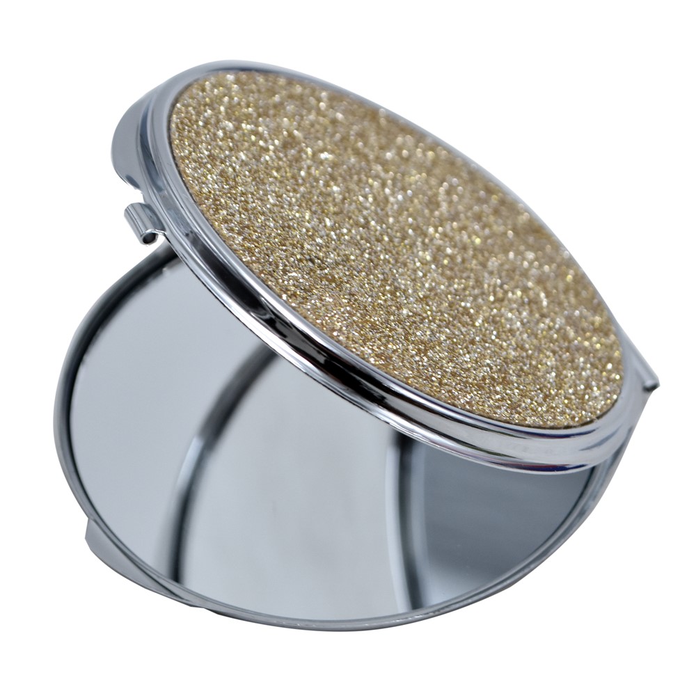 Pasqyrë xhepi për makeup, me 2 anë të palosshme, me strukturë prej materiali plastike ABS dhe metal, në ngjyra dhe dizajne të ndryshme, në formë rrethore, me përmasa Ø7 cm. Krahët e palosshëm lejojnë një pamje më të mirë të fytyrës dhe rezultate më të mira. Mund të merret kudo me vete falë përmasave të vogla. Ky produkt është i përshtatshëm për përdorim personal për kujdesin e fytyrës dhe makeup.