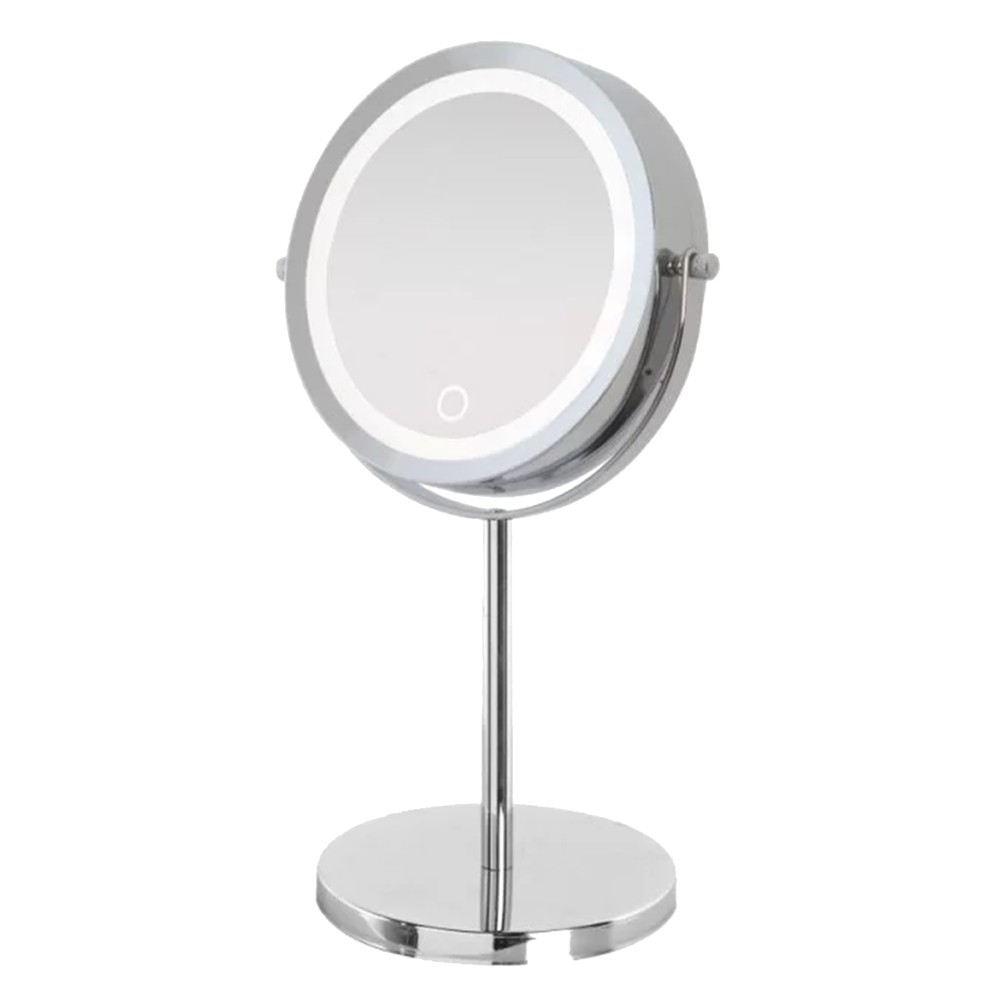 Pasqyrë statike rrethore, me ndriçim LED , metal/krom, argjend, 17x H35.5 cm