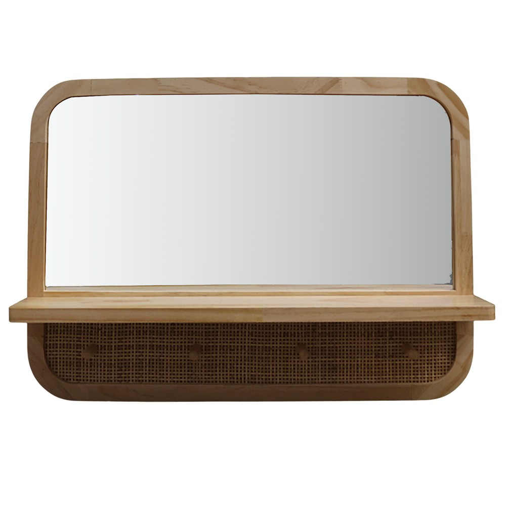 Kjo pasqyrë është një zgjedhje praktike dhe shumë e zgjuar për ata që kërkojnë të kenë dy produkte në një të vetëm. Ajo ka në pjesën e fundme të tij edhe disa vende për të varuar rrobat tuaja apo çelësat. Vjen me një dizanj minimalist dhe me strukturë druri. Tepër elegante dhe e përshtatshme për çdo stil arredimi. Ngjyra e drurit natyral e bën të duket shumë këndshëm në korridorin tuaj. Vjen në formë drejtëkëndore dhe në përmasat 68x12.5xH50 cm. Sturktura e saj është tepër rezistente dhe po ashtu është tepër funksionale.