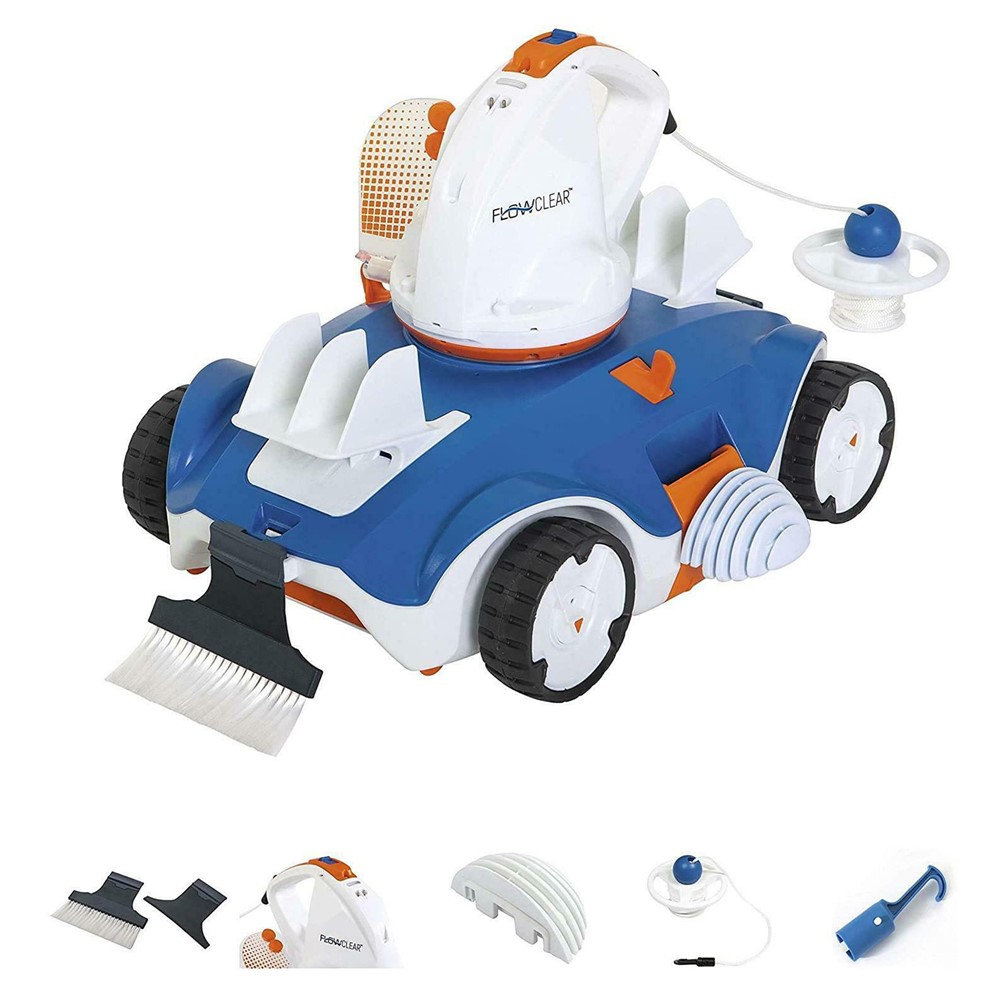 Robot automatik pa kabëll, për pastrimin e ujit të pishinave, me strukturë prej materiali plastik dhe inoks, i cili është rezistent ndaj ujit, kushteve atmosferike dhe gërryerjes që shkaktohet për shkak të veprimit të agjentëve kimikë dhe elektro-kimikë. Roboti është i pajisur me një sistem të integruar të sensorëve të ndjeshëm ndaj ujit, të cilët e aktivizojnë pajisjen kur është plotësisht e zhytur në ujë dhe e çaktivizojnë atë në momentin që del nga uji, duke mbrojtur motorin. Përmban një filtër standart, i cili pastron deri në 4.5 litra papastërti, dhe ka kapacitet prej 2700 l/orë. Sistemi i patentuar i lëvizjes garanton një pastrim efikas të pishinës, duke lejuar që roboti të rrotullohet deri në 360° dhe të ndryshojë drejtimin e tij nëse ndesh në ndonjë mur apo pengesë. Operon me dritë LED dhe bateri litiumi të rikarikueshme që zgjat shumë, ka autonomi deri në 90 minuta dhe karikohet për 5 deri në 6 orë. Paketimi përmban gjithashtu një kabëll karikimi, që punon me tension 8.4 V DC. Ky produkt është i përshtatshëm për pishinat me sipërfaqe totale deri në 45 m2. Rekomandohet të përdoret për pastrimin e pishinave me fund të sheshtë.