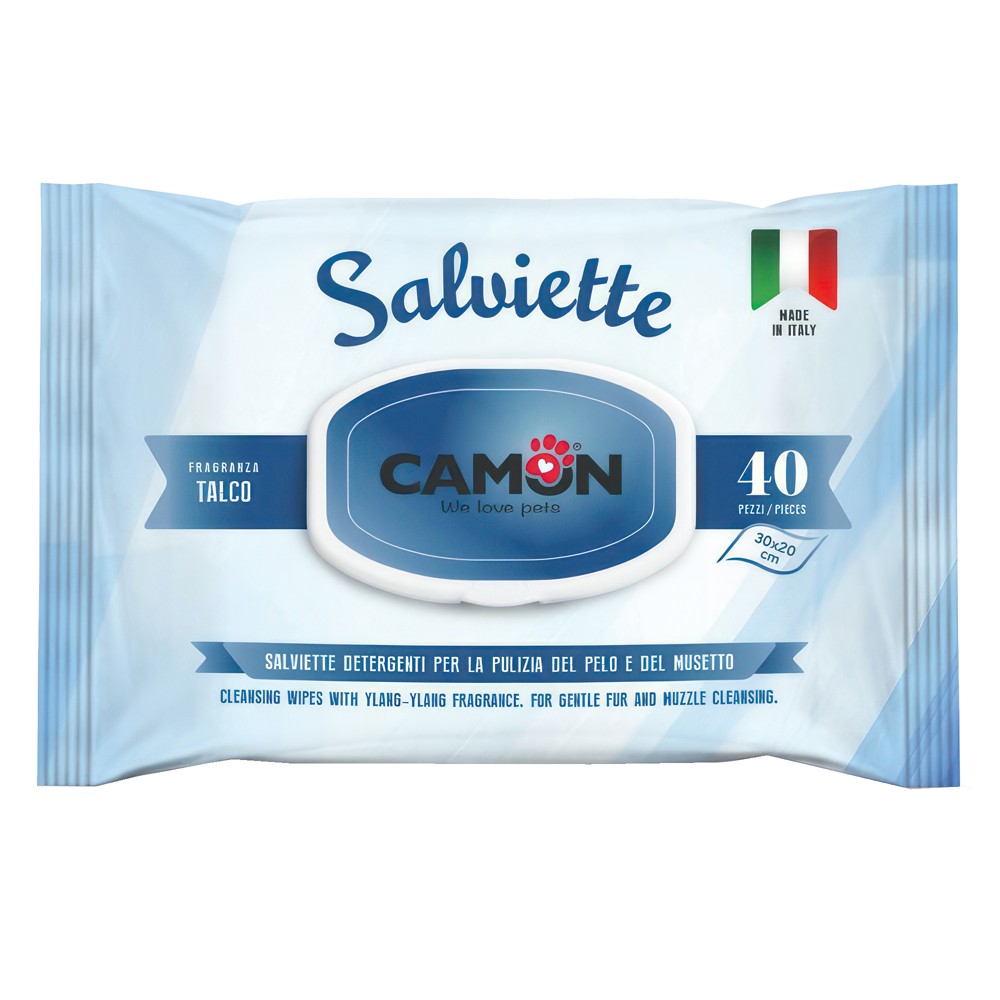 Peceta të lagura për kafshë, Camon, 40 copë, 20x30 cm, me talc
