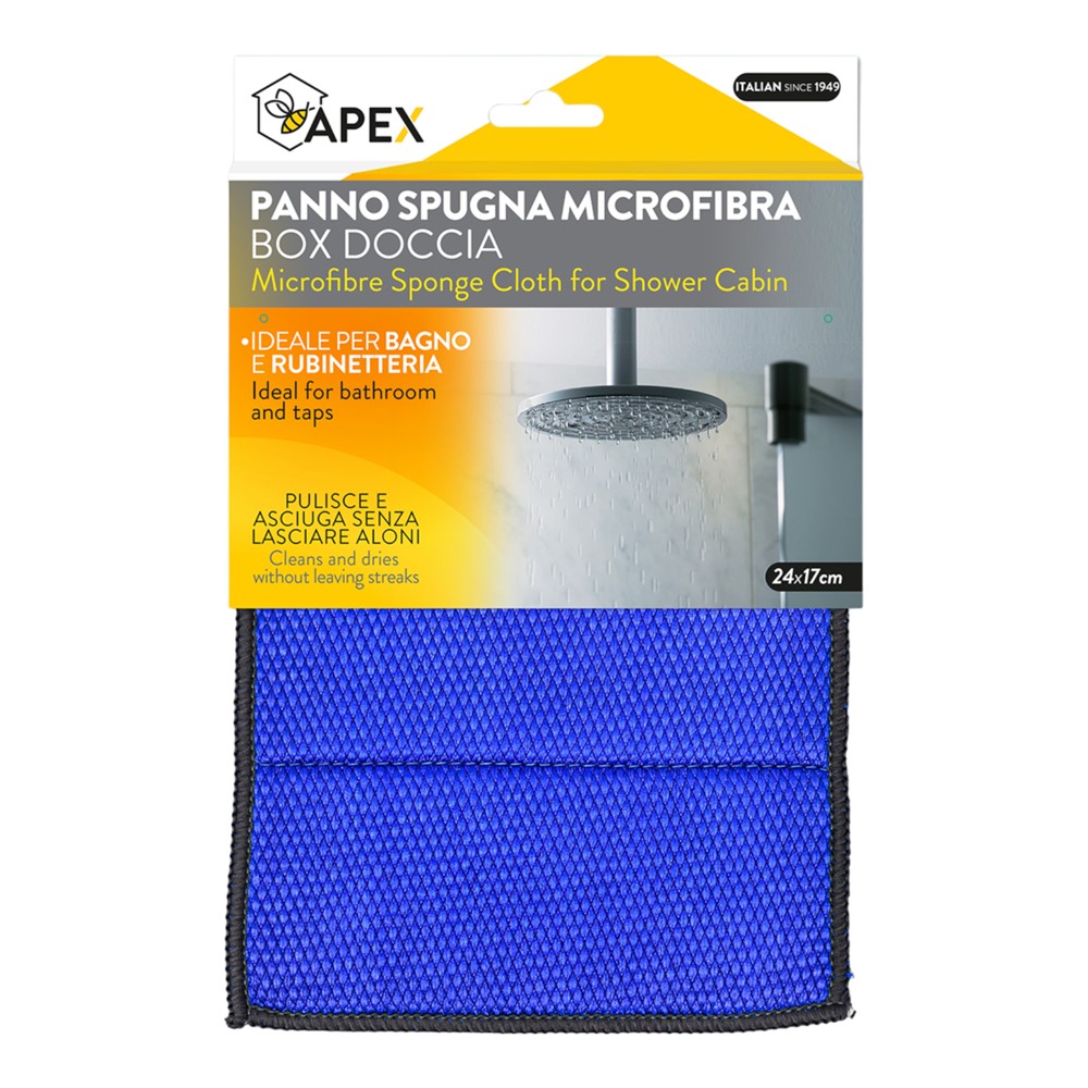 Pecetë pastrimi për kabinë dushi dhe rubinet, Apex, sfungjer mikrofibër, 24x17 cm, blu, 1 copë