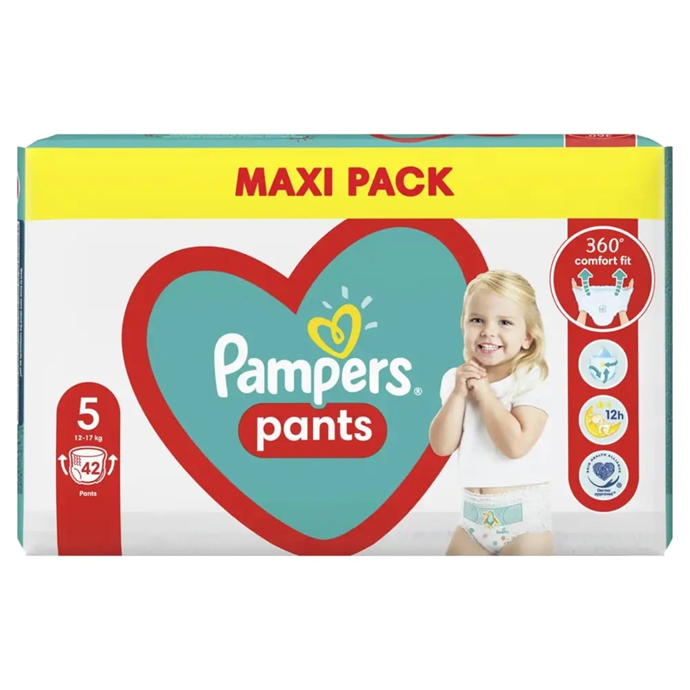 Pelena për bebe, në formë mbathjesh pa ngjitës, të përbëra nga material pambuku hipoalergjik të testuar klinikisht, i cili përmban 2 zona të thata që mundësojnë shpërndarjen e njëtrajtshme dhe përthithjen e lagështisë, duke siguruar që lëkura të mbetet e thatë. Struktura e përbërë nga mikro-pore lejon ajrosjen e lëkurës, duke shmangur skuqjen apo irritimin për shkak të lagështisë së tepërt, që i bën të përshtatshme për lëkurën e ndjeshme të bebeve. Pelenat janë të pajisura me një shirit elastik në zonën e barkut dhe këmbëve, që mundësojnë lëvizjen e lirshme të fëmijës. Materiali përbërës shmang irritimin dhe siguron mbrojtje dhe butësi deri në 12 orë. Ky produkt është i përshtatshëm për foshnja me peshë trupore 12-17 kg.