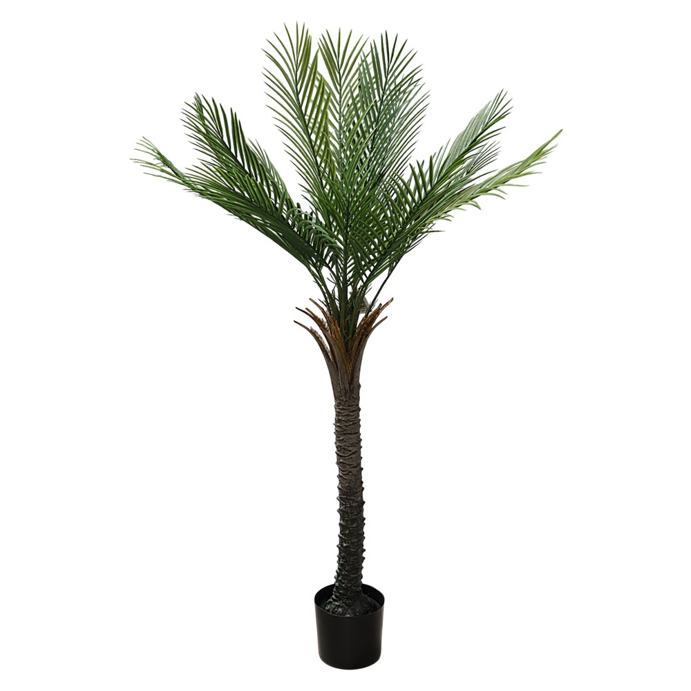 Një palmë artificiale në një vazo plastike është një dekorim i shkëlqyeshëm për shtëpinë, zyrën ose dyqanin tuaj. Përpunimi i kujdesshëm e bën produktin në mënyrë shumë të ngjashme me një bimë të vërtetë, falë së cilës brendësia e pasuruar me një bimë artificiale bëhet jashtëzakonisht komode. Pema ka një lartësi prej 150 centimetra, duke e bërë atë një element të përshtatshëm për të dekoruar ambiente të ndryshme në shtëpi, zyrë, ose ambiente tjera.