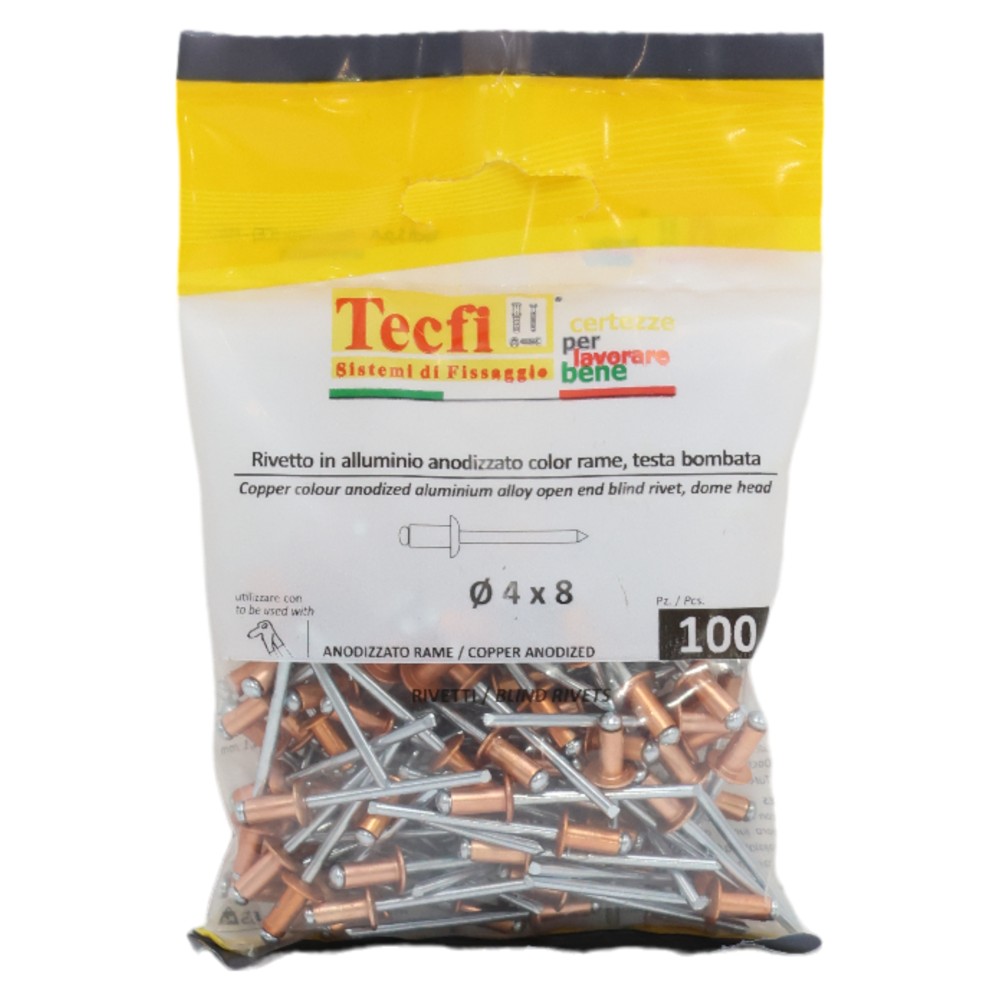 Perçina alumini anodizuara me ngjyrë bakri /çeliku, Ø 4 x 8mm , Bag 100