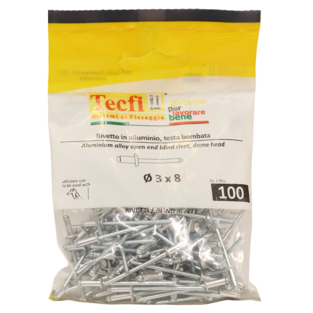 Perçina Alumini/çeliku, Ø 3x8mm , Bag 100