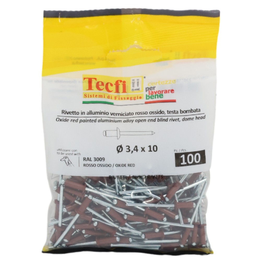 Perçina Alumini/çeliku RAL 3009, Ø 3,4x10mm , Bag 100