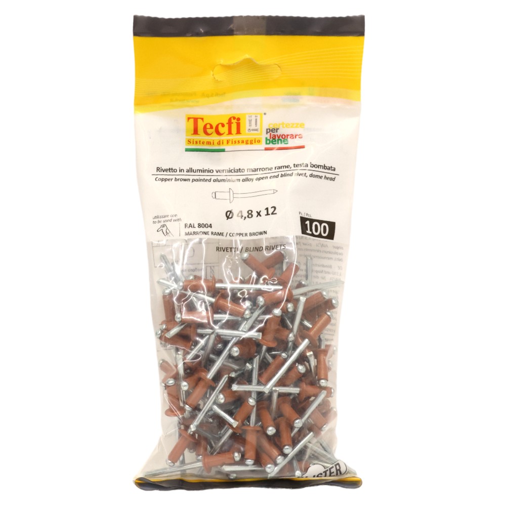 Perçina Alumini/çeliku RAL 8004, Ø 4,8x12mm , Bag 100