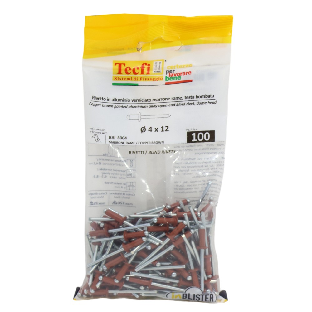 Perçina Alumini/çeliku RAL 8004, Ø 4x12mm , Bag 100