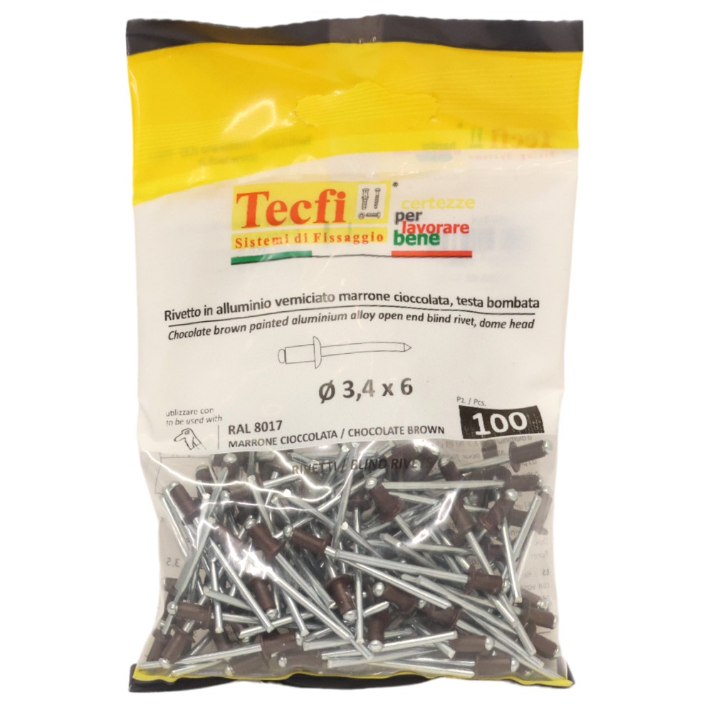 Perçina Alumini/çeliku RAL 8017, Ø 3,4x6mm , Bag 100