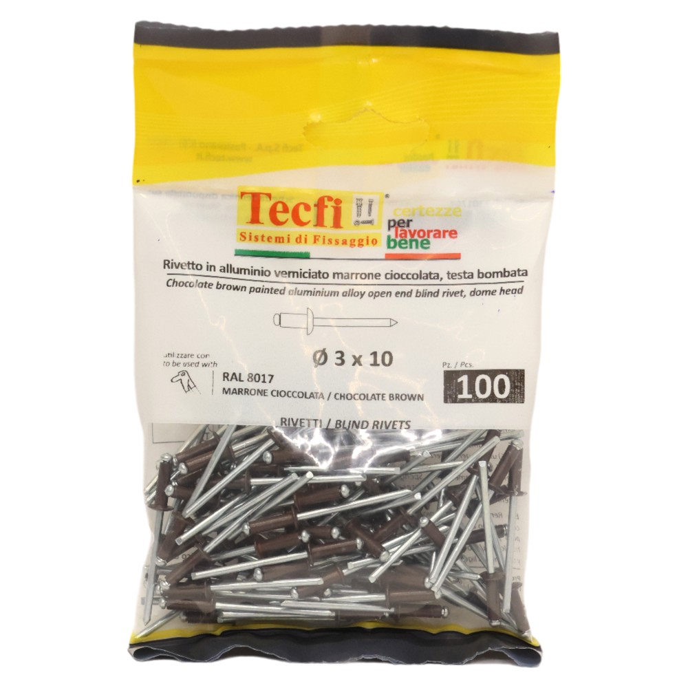 Perçina Alumini/çeliku RAL 8017, Ø 3x10mm , Bag 100