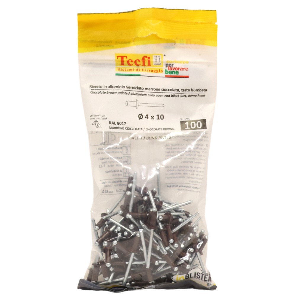 Perçina Alumini/çeliku RAL 8017, Ø 4x10mm , Bag 100