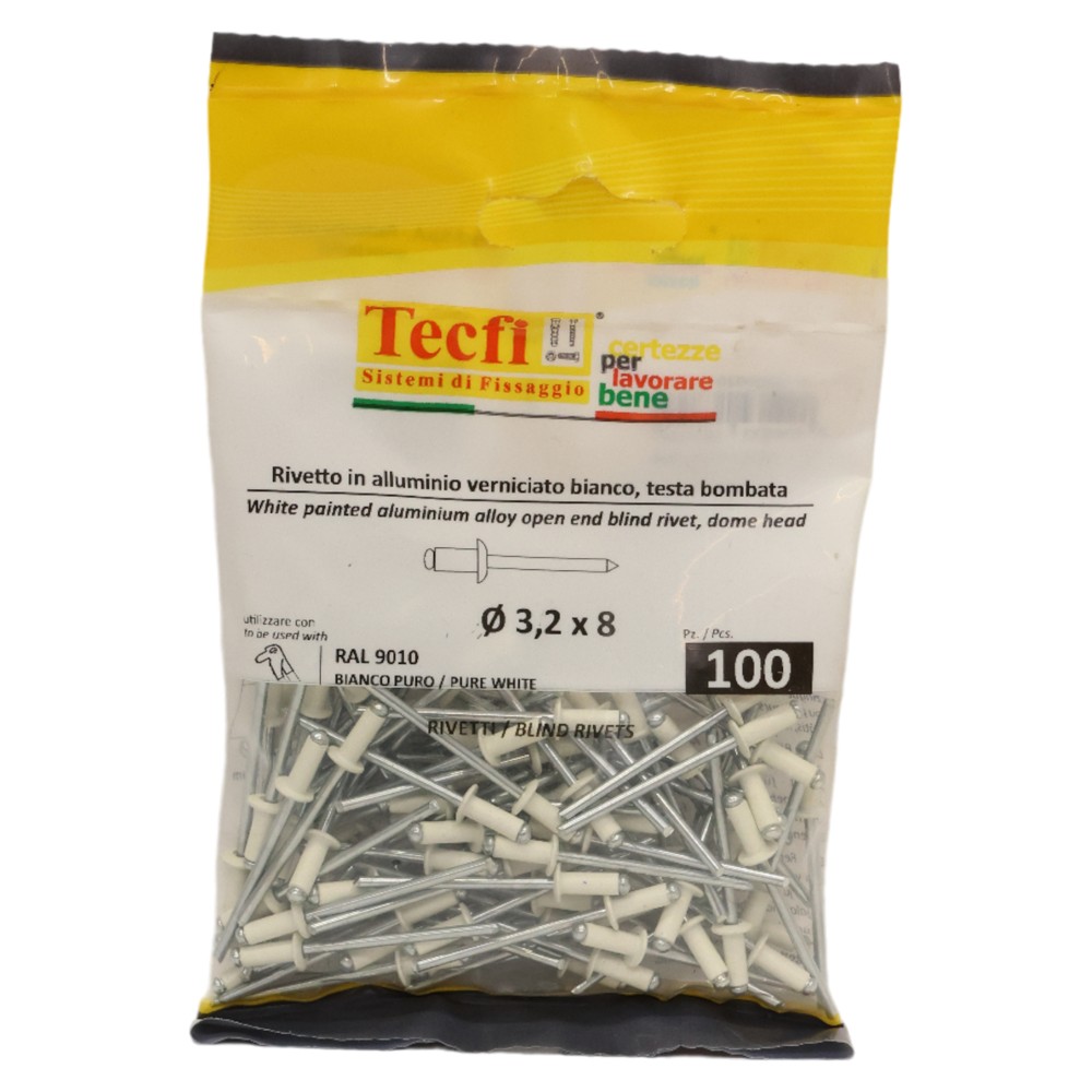 Perçina Alumini/çeliku RAL 9010, Ø 3,2x8mm , Bag 100