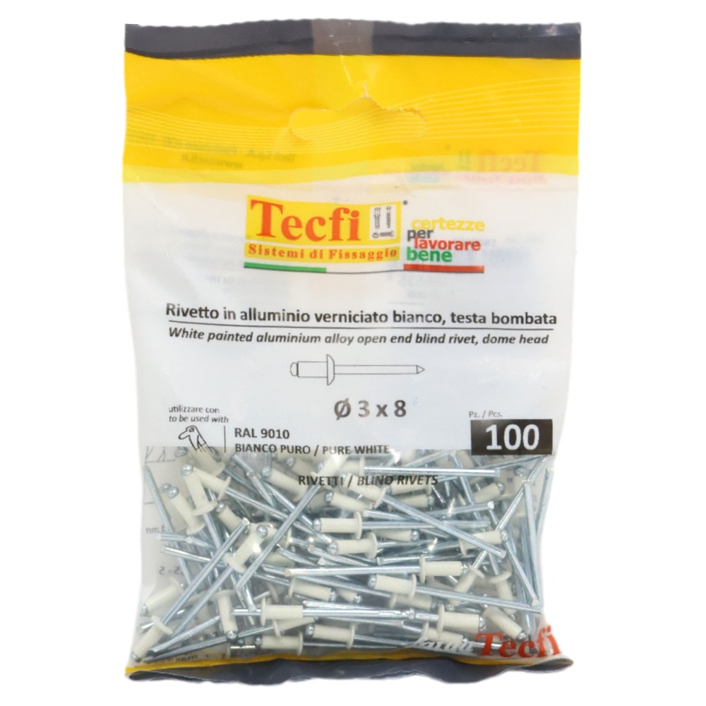 Perçina Alumini/çeliku RAL 9010, Ø 3x8mm , Bag 100