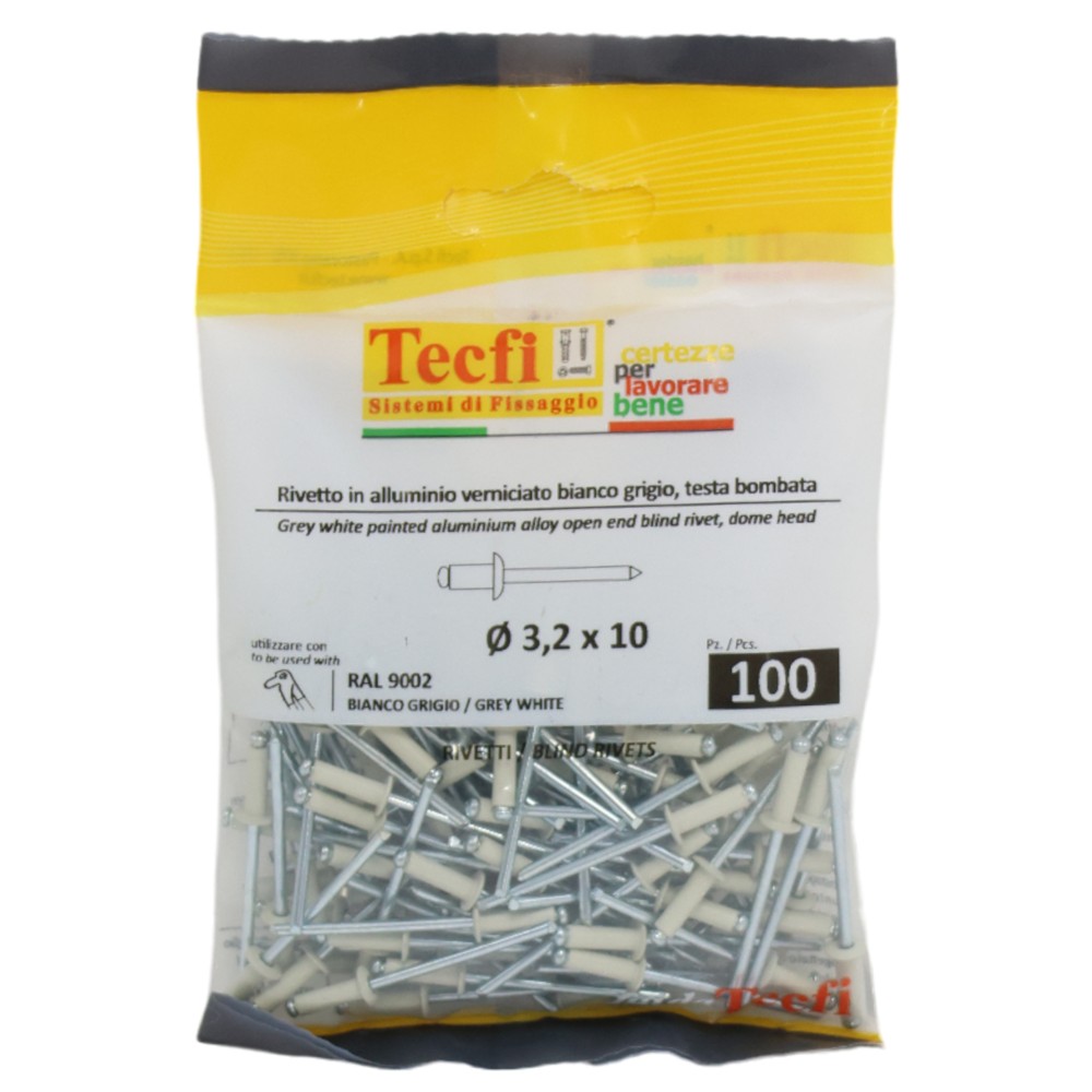 Perçina alumini RAL 9002 alumin/çeliku, Ø 3,2x10mm , Bag 100