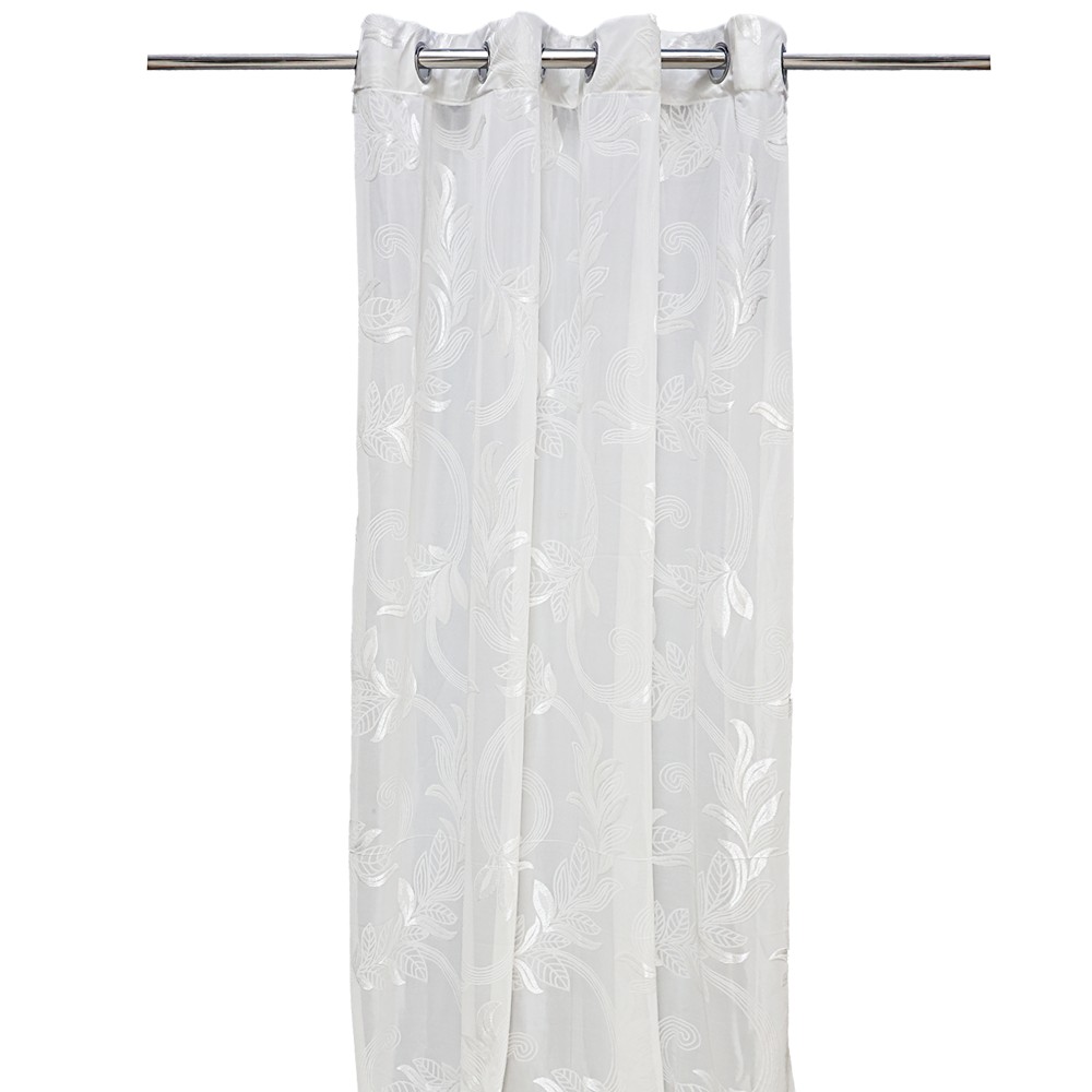 Perde e hollë me unaza, 100% poliestër, e bardhë, 140x260 cm