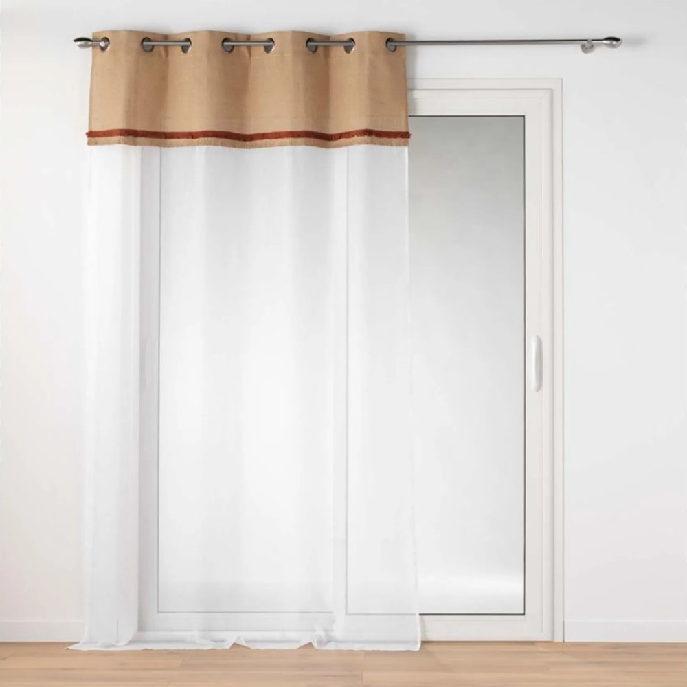Po vlerësoni:Net curtain with rings, 100% polyester, white/beige and black dividing line, 140x240 cm