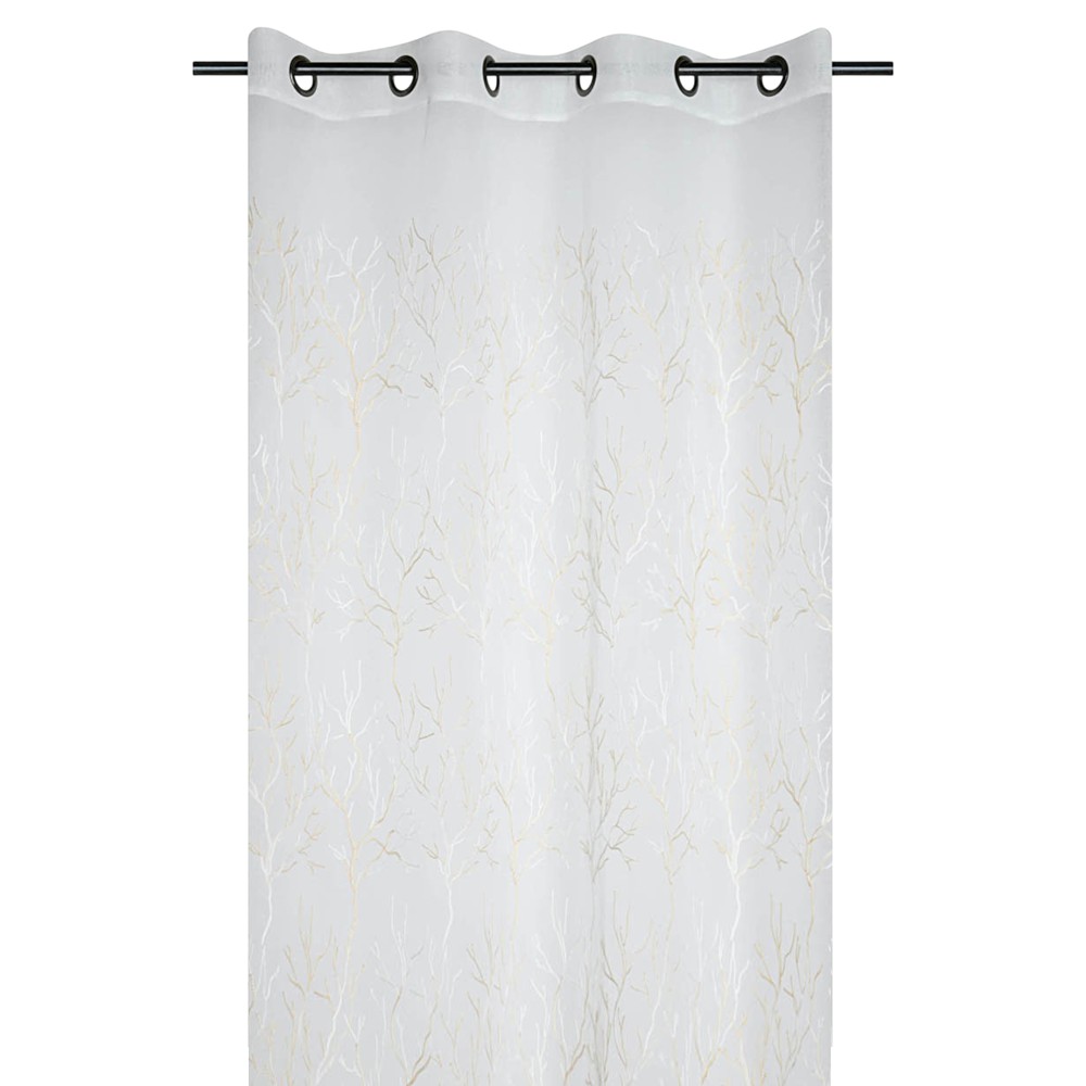 Perde e hollë me unaza Corallys, 100% poliestër, e bardhë, 140x260 cm