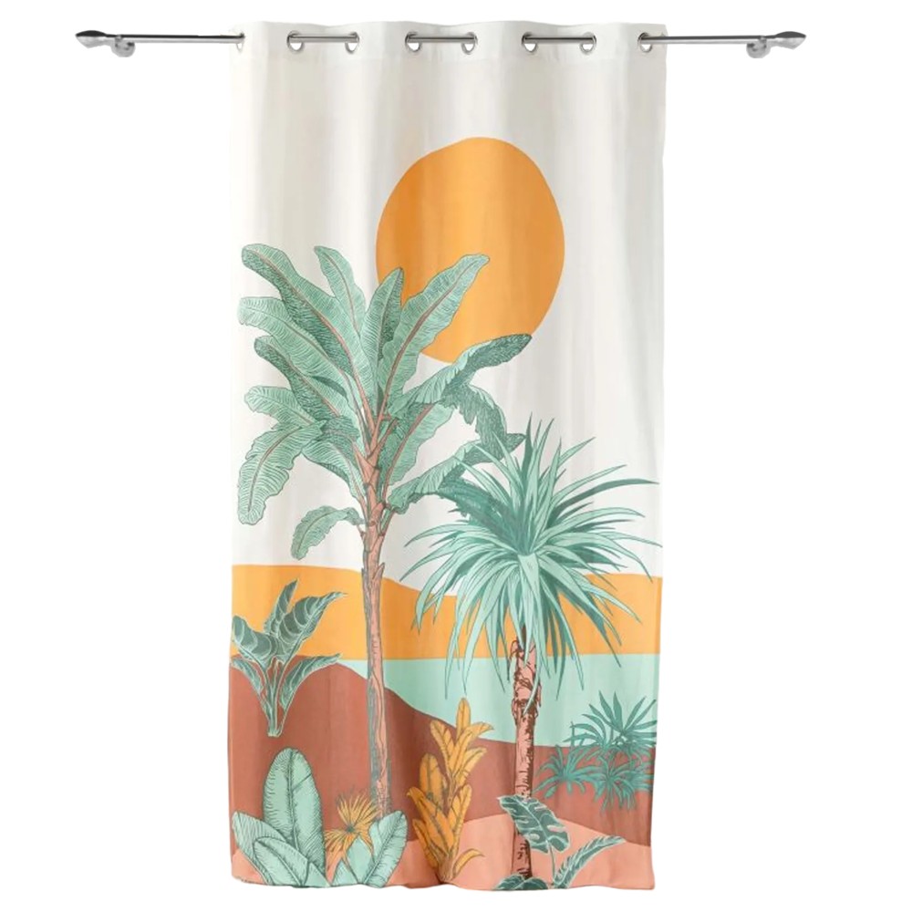 Perde e plotë me unaza, 100% pambuk, e bardhë me dizenjo palma, 140x260 cm