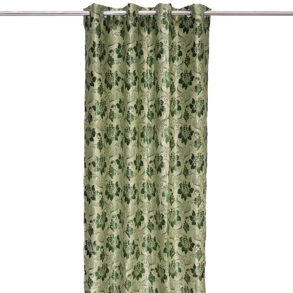 Perde e plotë me unaza, 100% poliestër, jacquard, jeshile me dizenjo lulesh, 140x260 cm