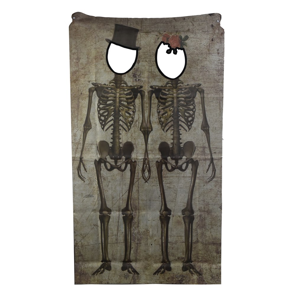 Kjo perde me dekor cift skeleti do të shtojë një element të frikshëm në shtëpinë tuaj këtë sezon të Halloween.